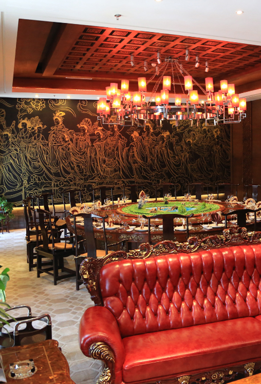 宴天下大酒店定位以商務(wù)宴請(qǐng)及中檔宴席為主,在充分挖掘河洛菜品精髓的同時(shí),聘請(qǐng)資深名廚經(jīng)營粵菜、精品川菜、杭幫菜等,可滿足不同口味客人的需求,著重突出天然、綠色、人文、健康的飲食理念。酒店一層為主題大堂及商務(wù)簡(jiǎn)餐,裝修風(fēng)格既厚重古樸又時(shí)尚簡(jiǎn)約,各類燈飾、彩繪壁畫、精雕石刻無不體現(xiàn)出濃厚的河洛風(fēng)情。二層為宴會(huì)大廳及商務(wù)包間,可同時(shí)接待近600人就餐;作為洛陽第一家全數(shù)碼演藝多功能宴會(huì)廳,它采用了超前的設(shè)計(jì)理念,融合了演藝廳及星光大道的時(shí)尚氛圍。三層為38間各具特色、情調(diào)迥異的豪華雅間。......