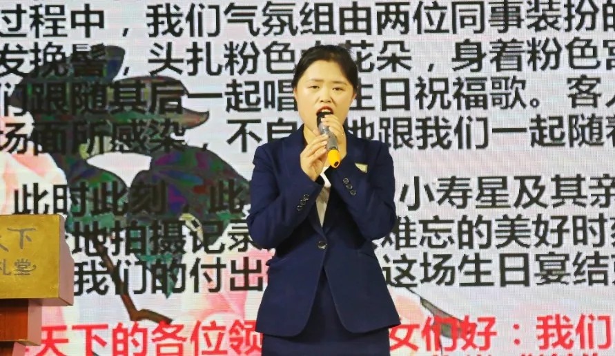 在感動服務案例分享中,有喜歡廚藝又熱愛捕捉新聞的后廚員工,有講述洛陽牡丹故事、推薦牡丹宴酒的服務人員,有全程周到服務、貼心策劃宴席的前臺工作人員,有敬業(yè)愛崗、時刻為客人著想的安保人員……餐旅的家人們在日常點滴中,送上一次次感動服務。