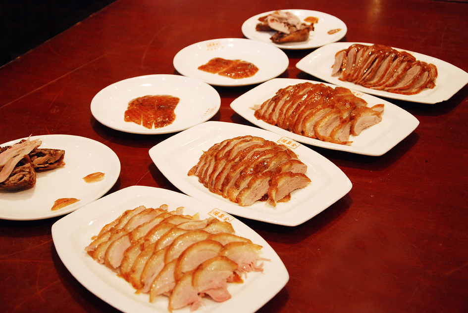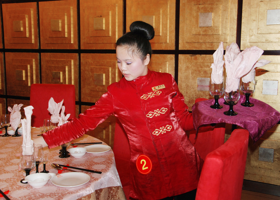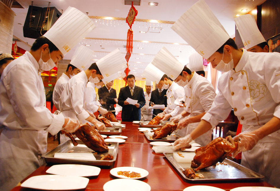 17日至21日為餐廳技能服務(wù)展示。其中17日至19日進行的是中餐宴會鋪臺、斟酒、折口布花項目的比賽;20日進行全聚德烤鴨、紅子雞、宴天下歷史介紹;21日進行片鴨比賽。